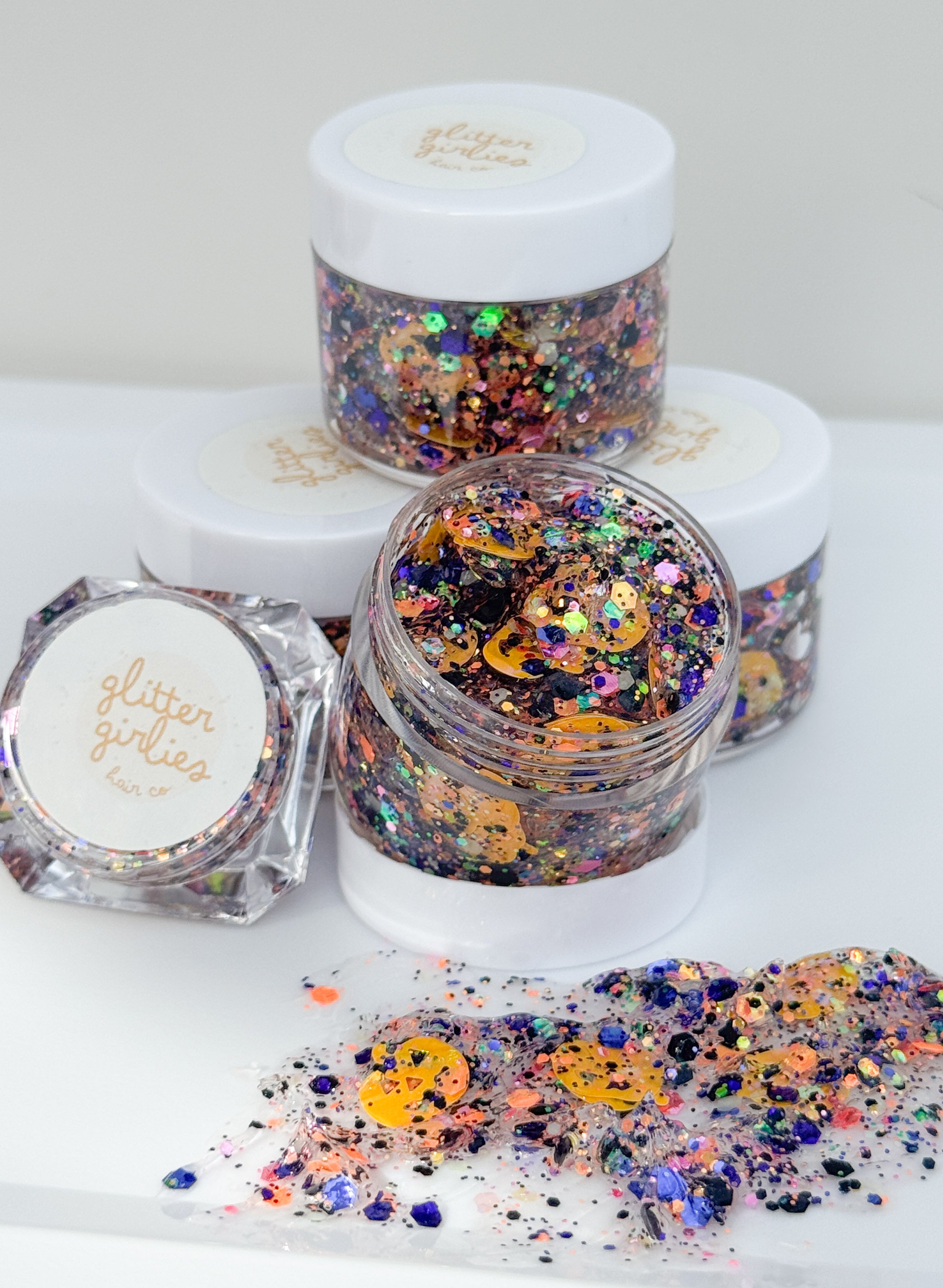At Glitter Girlies, our hair glitters are designed to bring joy, creativity, and everyday magic to every sparkle-loving soul. Each jar is handcrafted with a unique blend of chunky and fine glitters, confetti shapes, and tinsel accentsβall suspended in a lightweight, easy-to-apply gel that dries quickly and washes out with shampoo.