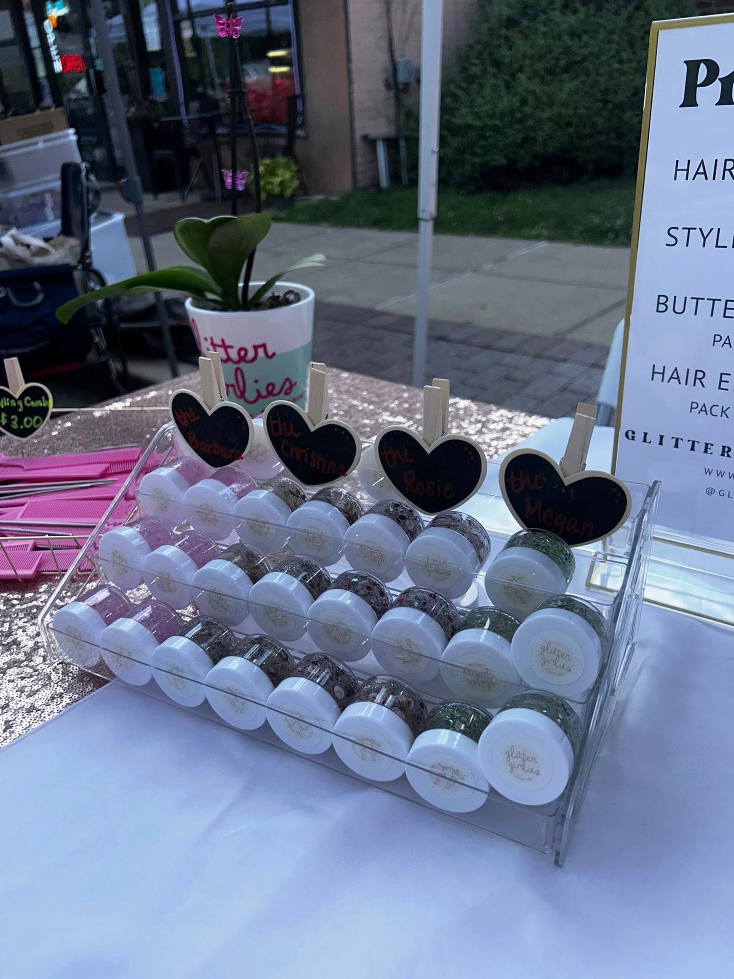We’re thrilled to share that Glitter Girlies is now available for vendor shows, birthday parties, markets, and community events! From local fairs to school festivals and pop-up boutiques, our sparkle-filled collection of hair glitters, accessories, a nd party products brings color, creativity, and everyday magic wherever we go.