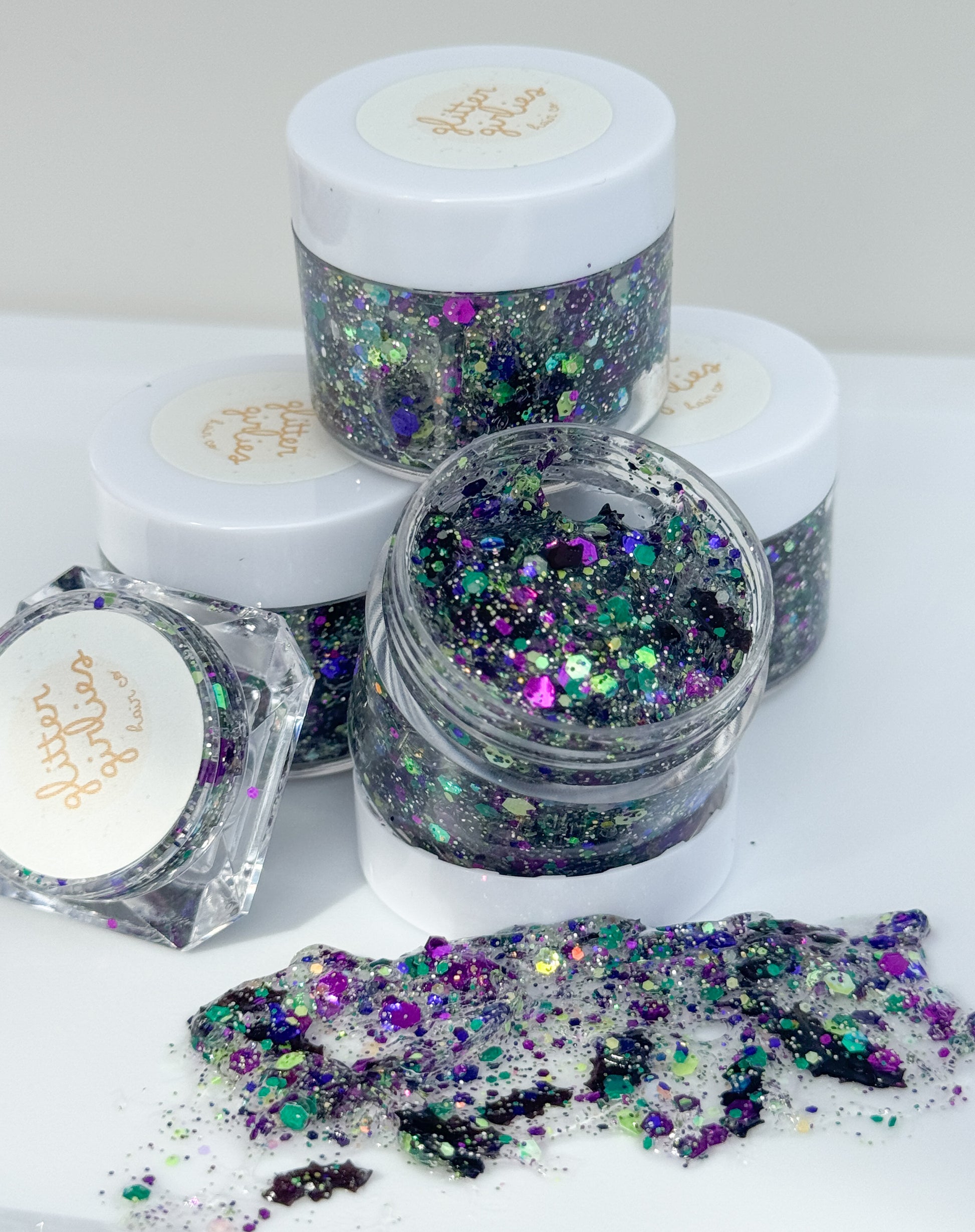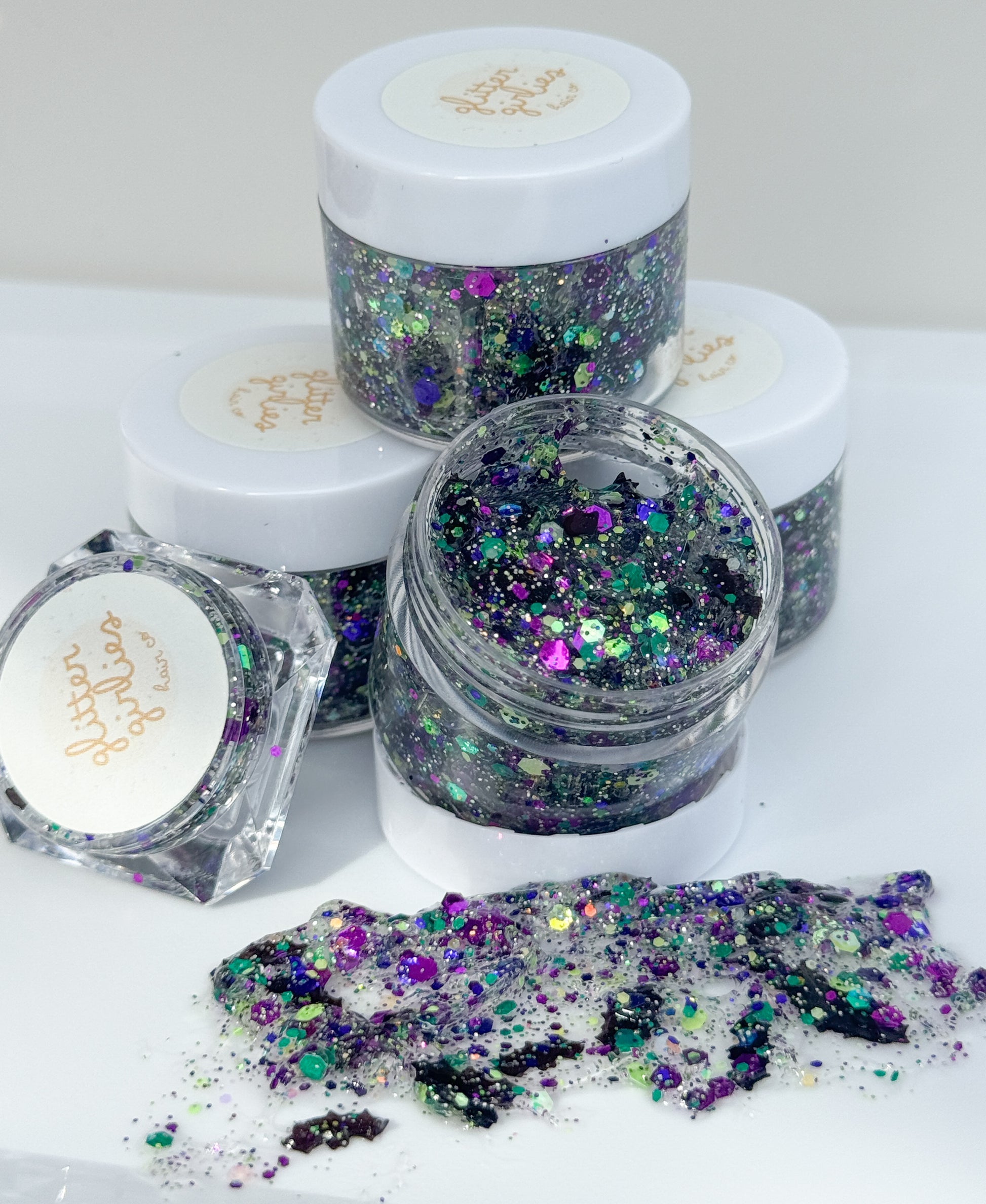 Miss Batty Boo brings Halloween magic to life with a frightfully fun mix of tiny black bats, chunky black, green, and purple glitter, and a soft silver shimmer that glows like moonlight. Whether sheβs dressing up for trick-or-treating, a school Halloween party, or just showing off her spooky spirit, this glitter is the perfect way to sparkle all season long! πβ¨