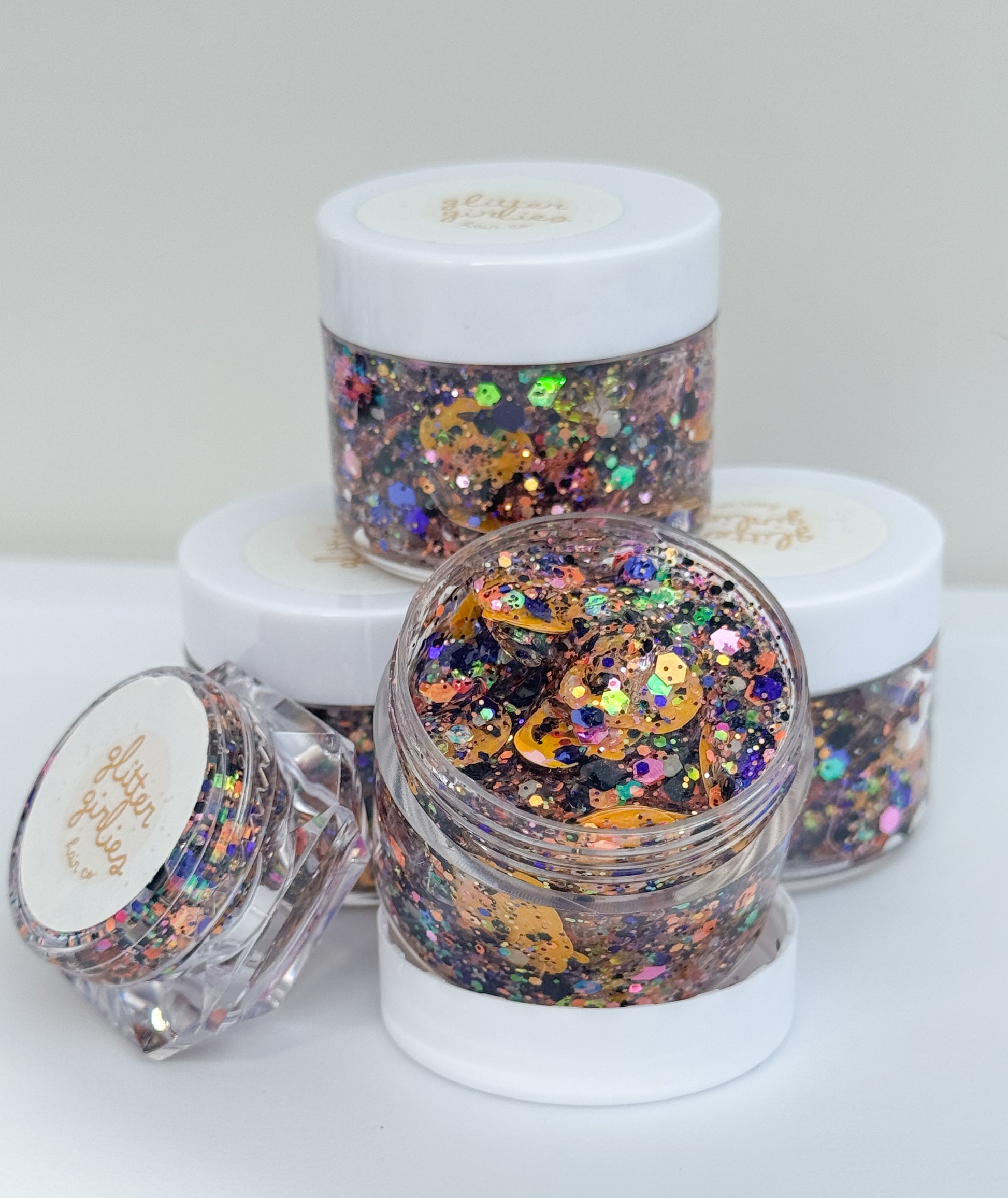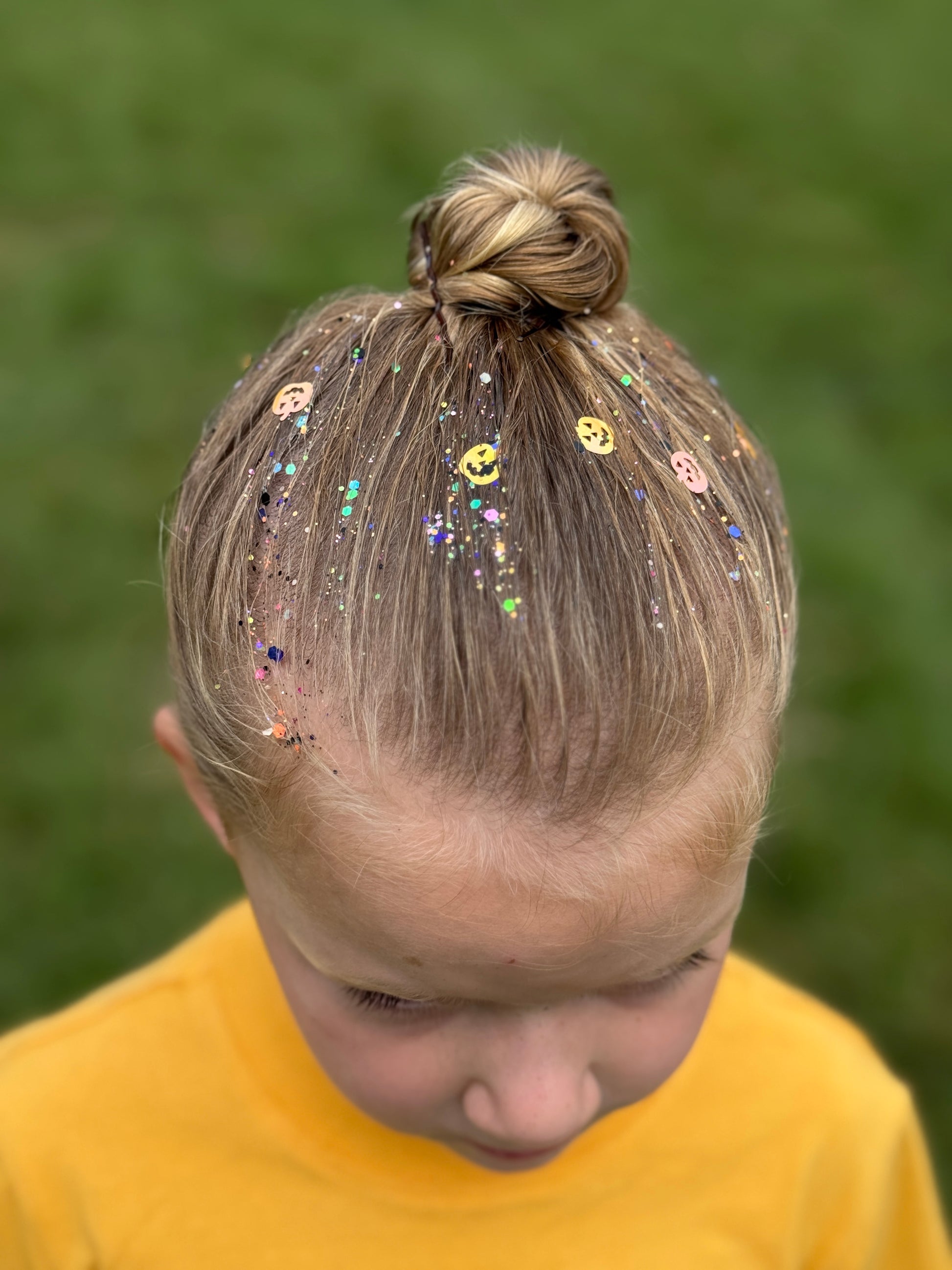 Miss Pumpkin Glow is the ultimate Halloween must-have, packed with tiny orange pumpkins, chunky gold and copper glitter, and a magical glow-in-the-dark shimmer that lights up every spooky night! Perfect for pumpkin patch trips, costume parties, trick-or-treating, or school fall festivals, this glitter adds a cheerful twist to any hairdo while keeping that classic Halloween charm. π»π§‘
